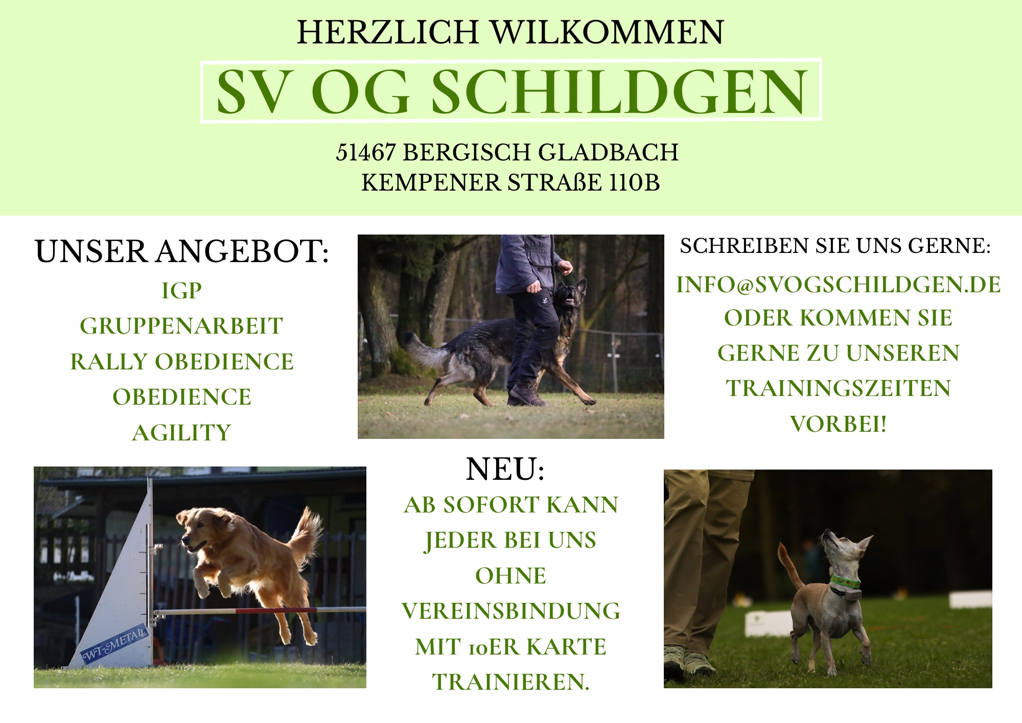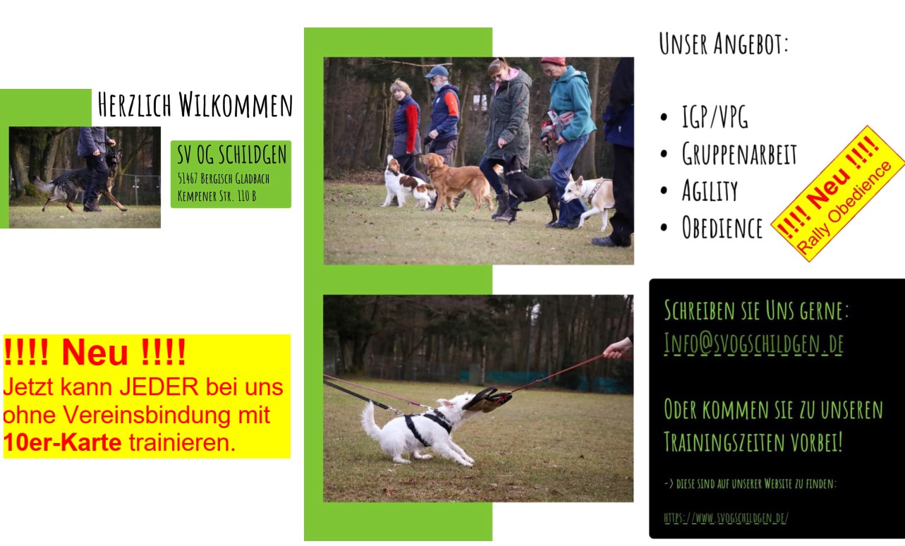 Auf den folgenden Seiten könnt Ihr vieles über unseren Hundesportverein erfahren. Welche Sportarten Ihr mit Eurem Hund bei uns ausüben könnt, könnt Ihr unter „Angebote“ herausfinden. Wir bieten verschiedene Aktivitäten für Mensch und Hund an. Auch bieten wir viele Veranstaltungen an, bei denen Ihr uns besuchen oder sogar mitmachen könnt. Seht Euch einfach auf unserer Homepage um und wir würden uns freuen, wenn Ihr uns besuchen kommt.